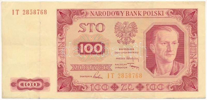 Lengyelország 1948. 100Zl T:F Poland 1948. 100 Zlotych C:F https://www.darabanth.com/de/473-Fernauktion/473.0/Numismatik/Weltweit-Banknoten~1500015/Lengyelorszag-1948-100Zl-TF-Poland-1948-100-Zlotych-CF~II3203650