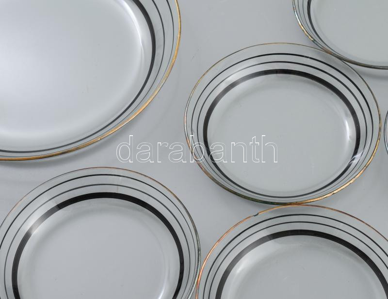 Beschreibung: Régi feketén csíkozott üveg köretes készlet, kopással, d: 14-24 cm