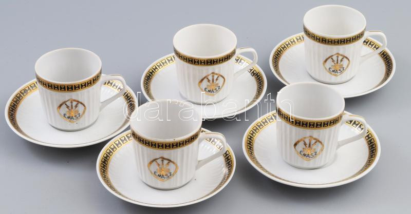 Beschreibung: Hollóházi 5 darab csésze alátéttel ÉMÁSZ márkajelzéssel, jelzett, kopásokkal, d: 11 cm