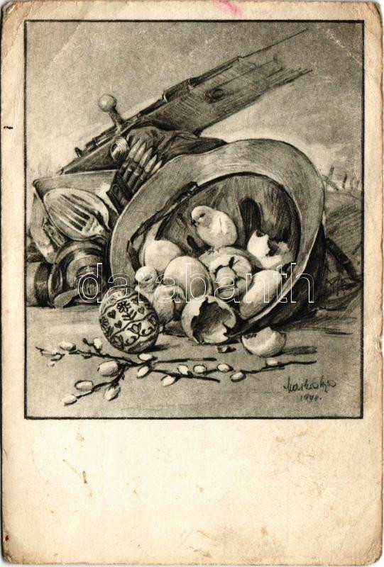 Beschreibung: 1944 Második világháborús magyar katonai húsvéti üdvözlet / WWII Hungarian military Easter greeting s: Markó Lajos (EB)