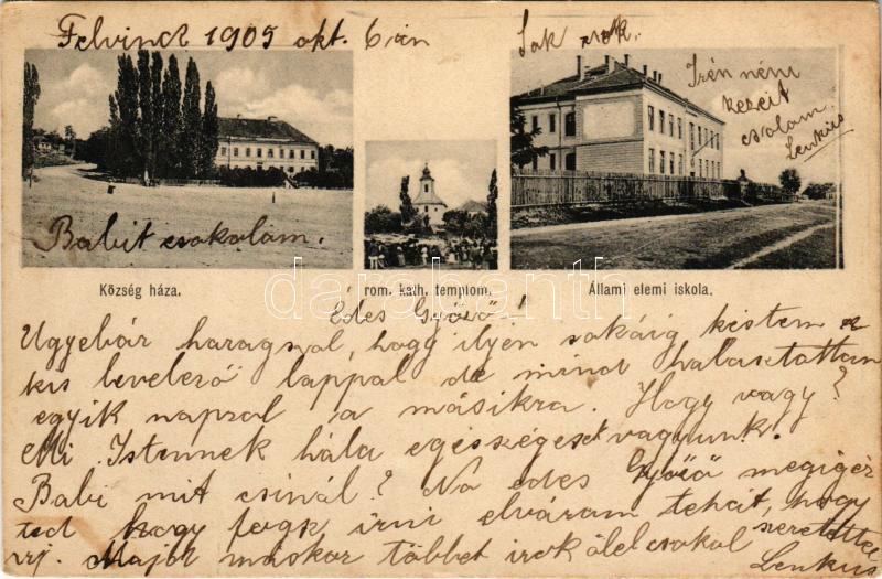 1905 Felvinc, Vintu de Sus, Unirea; Községháza, Római katolikus templo... https://www.darabanth.com/de/474-Fernauktion/474.0/Ansichtskarten/Siebenburgen~2000006/1905-Felvinc-Vintu-de-Sus-Unirea-Kozseghaza-Romai-katolikus-templom-Allami-elemi-iskola-~II3218436
