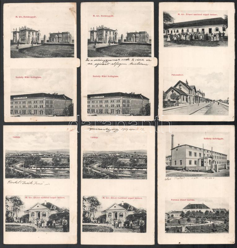 1907 Sepsiszentgyörgy, Sfantu Gheorghe; látképek. 6-részes szétesett kihajtható lap, rajta zsinagóga, kórház, korcsolyapálya, stb. / views. 6-tiled folding postcard (fell apart), with synagogue, hospital, ice skating rink, etc. (b)