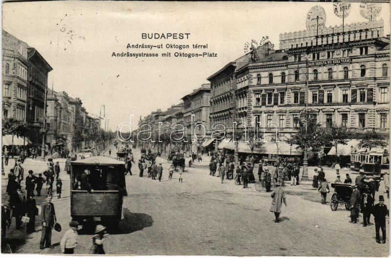 1915 Budapest VI. Andrássy út Oktogon térrel, villamos, Bass Sarolta n... https://www.darabanth.com/de/474-Fernauktion/474.0/Ansichtskarten/Ungarn~2000005/1915-Budapest-VI-Andrassy-ut-Oktogon-terrel-villamos-Bass-Sarolta-noi-ruhaterme-uzletek~II3215949