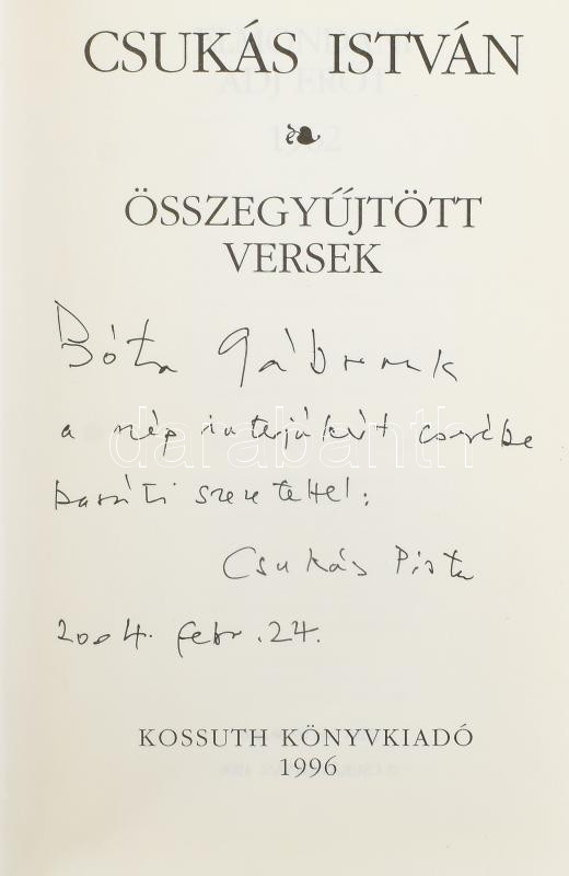 Csukás István: Összegyűjtött versek. DEDIKÁLT! Bp., 1996, Kossuth. Kia... https://www.darabanth.com/de/474-Fernauktion/474.0/Bucher/Bucher-Andere-kuriositaten~1000004/Csukas-Istvan-Osszegyujtott-versek-DEDIKALT-Bp-1996-Kossuth-Kiadoi-egeszvaszon-kotes-~II3215337