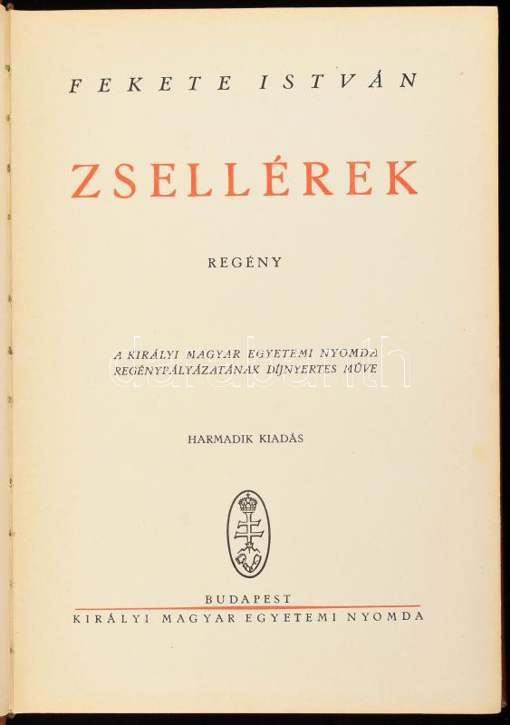 Fekete István: Zsellérek. Regény. Bp.,én.,Kir. M. Egyetemi Nyomda, 334... https://www.darabanth.com/de/474-Fernauktion/474.0/Bucher/Bucher-Andere-kuriositaten~1000004/Fekete-Istvan-Zsellerek-Regeny-Bp-en-Kir-M-Egyetemi-Nyomda-334-p-3-kiadas-Kiadoi~II3217289