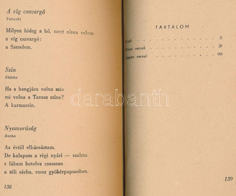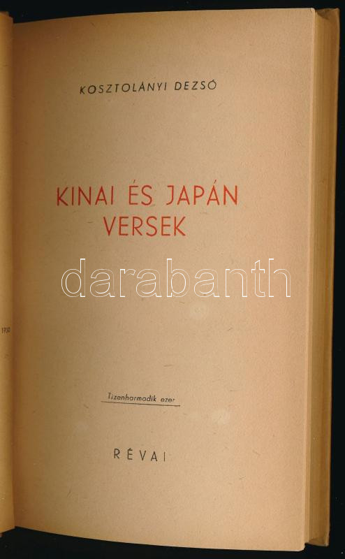 Kosztolányi Dezső: Kínai és japán versek. Bp.,1947, Révai. Kiadói kart... https://www.darabanth.com/de/474-Fernauktion/474.0/Bucher/Bucher-Andere-kuriositaten~1000004/Kosztolanyi-Dezso-Kinai-es-japan-versek-Bp-1947-Revai-Kiadoi-kartonalt-papirkotes-jo~II3219004