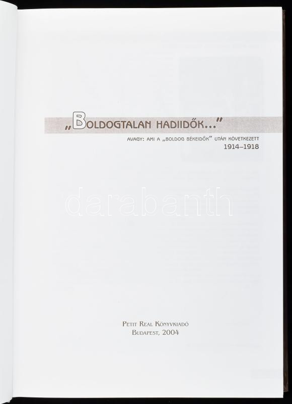 "Boldogtalan hadiidők..." avagy: ami a "boldog békeidők" után következett 1914-1918. Szerk.: Ravasz István. Bp., 2004, HM Hadtörténeti Intézet és Múzeum - Petit Real Könyvkiadó. 352 p. Rendkívül gazdag fekete-fehér képanyaggal illusztrált. Kiadói kartonált papírkötésben, jó állapotban.