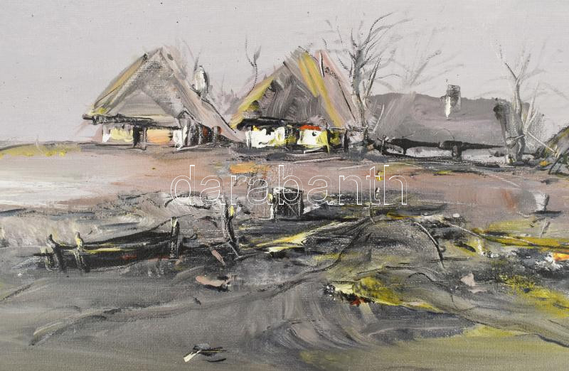 Beschreibung: Aba Szőcs László (1944-2018): Tanya. Olaj, vászon. Jelezve jobbra lent. Dekoratív fakeretben. 40x60 cm.