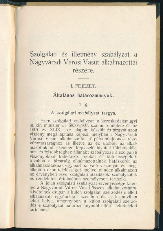 1912 Bp., A Nagyváradi Városi Vasút Alkalmazottainak szolgálati és ill... https://www.darabanth.com/de/474-Fernauktion/474.0/Kunst-Dokumente-andere-Sammelgebiete/Drucksachen~1000023/1912-Bp-A-Nagyvaradi-Varosi-Vasut-Alkalmazottainak-szolgalati-es-illetmeny-szabalyzata-38p~II3216365