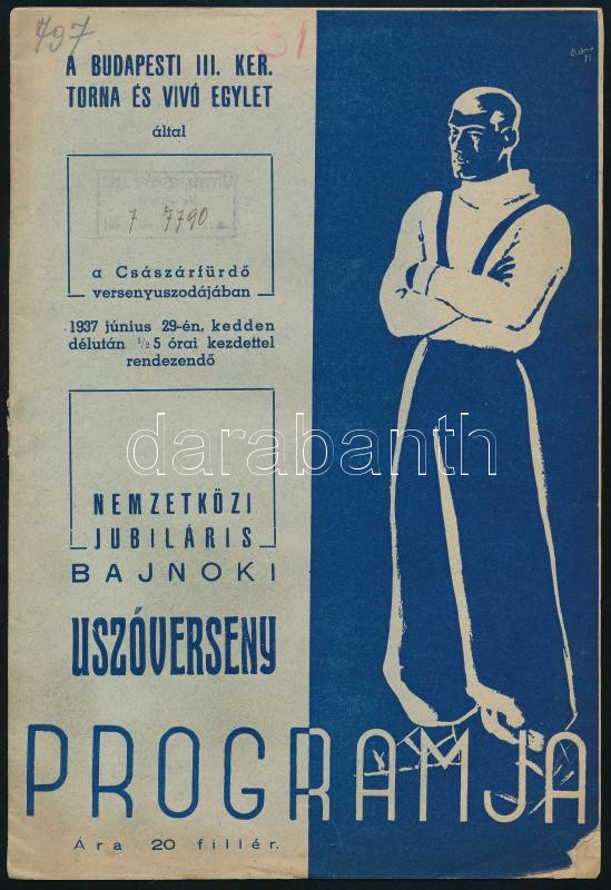 1937 A Budapesti III. Ker. Torna és Vívó Egylet nemzetközi jubiláris b... https://www.darabanth.com/de/474-Fernauktion/474.0/Kunst-Dokumente-andere-Sammelgebiete/Drucksachen~1000023/1937-A-Budapesti-III-Ker-Torna-es-Vivo-Egylet-nemzetkozi-jubilaris-bajnoki-uszoverseny~II3216135
