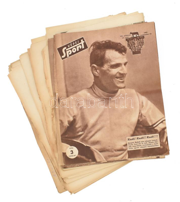 1960 Népsport 18 száma: 1960. aug. 26. - szept. 12. XVI. évf. 172 - 189. számok. + Képes Sport 1960 aug. 30., szept. 6., 13. VII. évf. 35-37. számok. Bennük a XVII. nyári olimpiai játékok, a tokiói olimpia híreivel. Köztük Parti János kenus, férfi öttusa csapat és Németh Ferenc, Török Gyula ökölvívó, Kárpáti Rudolf és a férfi kardcsapat aranyérmeinek híreivel. Változó állapotban, hajtottak.