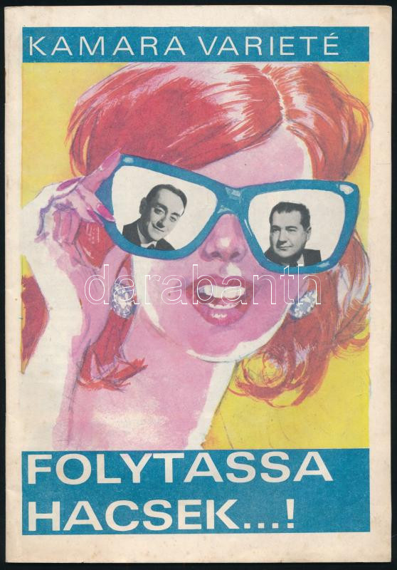 1968 "Folytassa Hacsek...!" kamara varieté színes prospektus https://www.darabanth.com/de/474-Fernauktion/474.0/Kunst-Dokumente-andere-Sammelgebiete/Drucksachen~1000023/1968-Folytassa-Hacsek-kamara-variete-szines-prospektus~II3217500