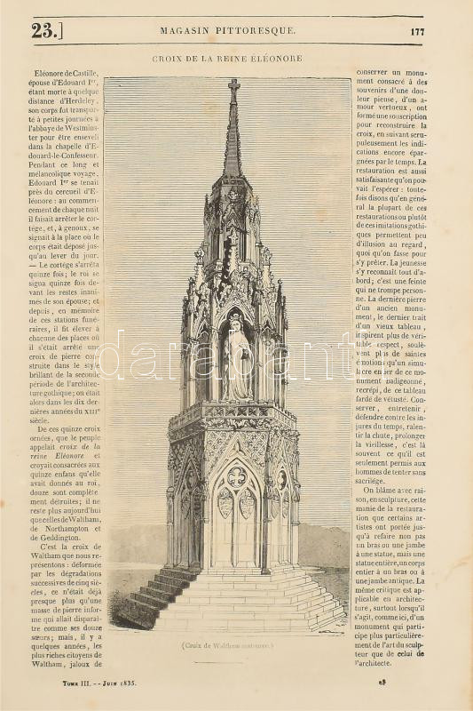 Le Magasin Pittoresque. Publié souls la direction de MM. Euryale Gazeaux et Éduard Charton. 1835. Troisiéme Année. (Harmadik évfolyam.) Paris, Aux Bureau D'Abonnement et de Vente, 4+412 p. Rendkívül gazdag fekete-fehér szövegközti és egészoldalas fametszetű képanyaggal illusztrált. Korabeli félvászon-kötés, kopott borítóval.