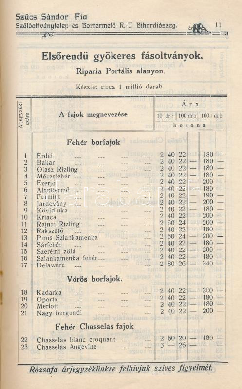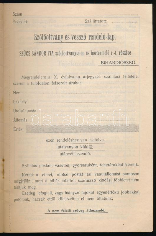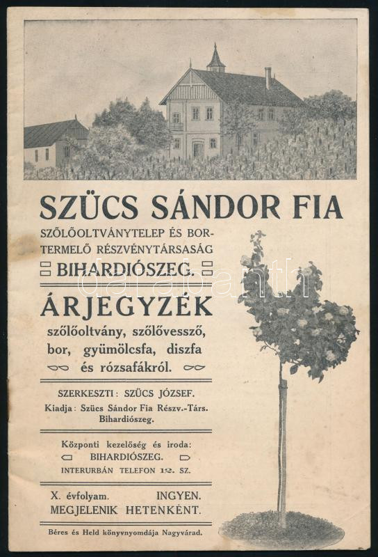 cca 1910 Szücs Sándor Fia Szőlőoltványtelep és Bortermelő Részvénytárs... https://www.darabanth.com/de/474-Fernauktion/474.0/Kunst-Dokumente-andere-Sammelgebiete/Drucksachen~1000023/cca-1910-Szucs-Sandor-Fia-Szolooltvanytelep-es-Bortermelo-Reszvenytarsasag-Bihardioszeg-arjegyzek-~II3218233