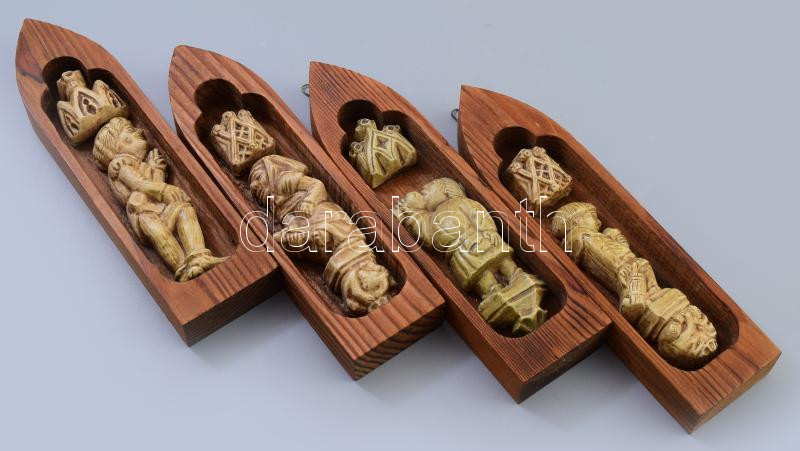 Beschreibung: 4 db Lengyel frivol szobor, gipsz, faragott fa keretben 23 cm