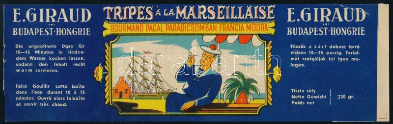 Tripes á la Marseillaise gourmand pacal paradicsomban francia módra cí... https://www.darabanth.com/de/474-Fernauktion/474.0/Kunst-Dokumente-andere-Sammelgebiete/Werbungen~1000005/Tripes-a-la-Marseillaise-gourmand-pacal-paradicsomban-francia-modra-cimke-kis-szakadassal~II3218355