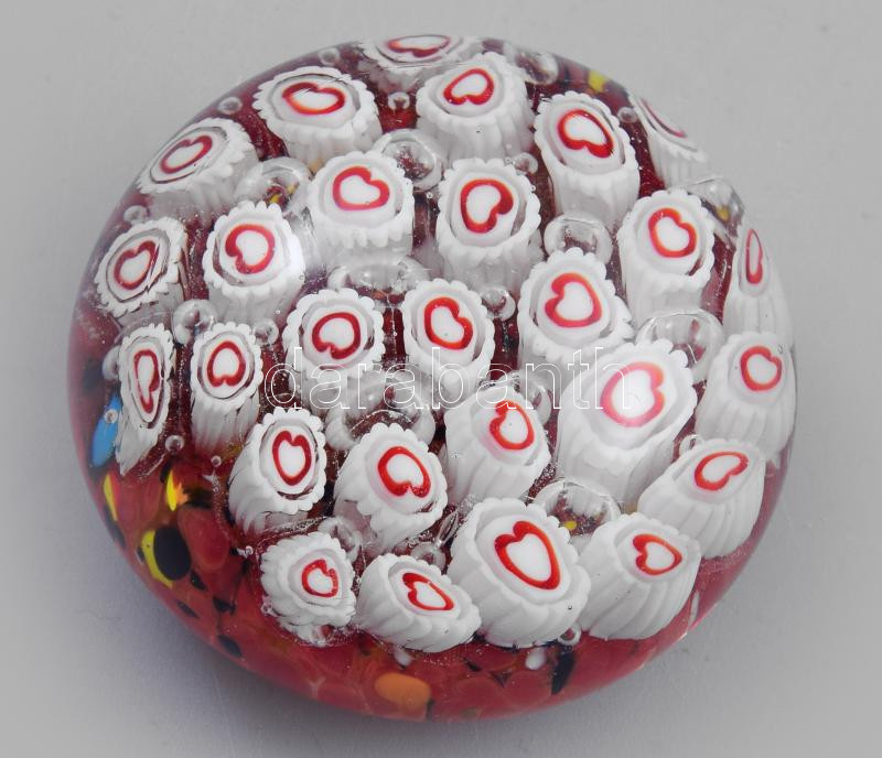 Murano millefiori levélnehezék, jelzés nélkül, d: 6 cm https://www.darabanth.com/de/474-Fernauktion/474.0/Porzellan-Keramik-Glass/Glaser~500007/Murano-millefiori-levelnehezek-jelzes-nelkul-d-6-cm~II3220254