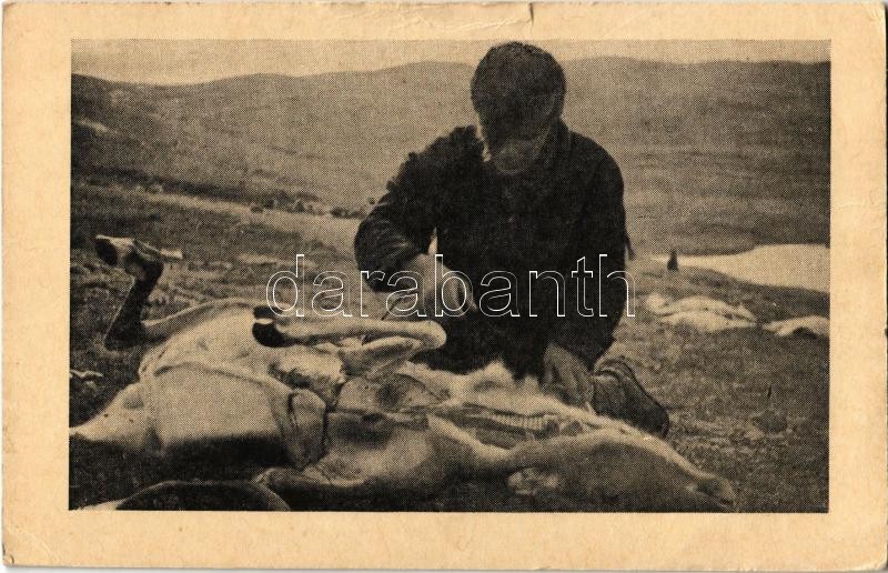 Eskimo hunter skinning a deer, folklore (small tear) https://www.darabanth.com/de/475-Fernauktion/475.0/Ansichtskarten/Folklore~1500024/Eskimo-hunter-skinning-a-deer-folklore-small-tear~II2027134