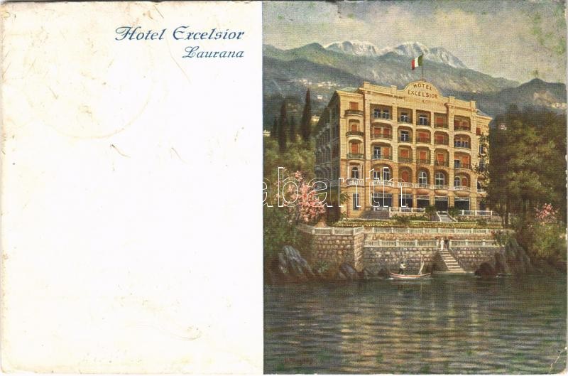 1936 Lovran, Lovrana, Laurana; Hotel Excelsior (szakadás / tear) https://www.darabanth.com/de/475-Fernauktion/475.0/Ansichtskarten/Kroatien~1500009/1936-Lovran-Lovrana-Laurana-Hotel-Excelsior-szakadas-tear~II2317996