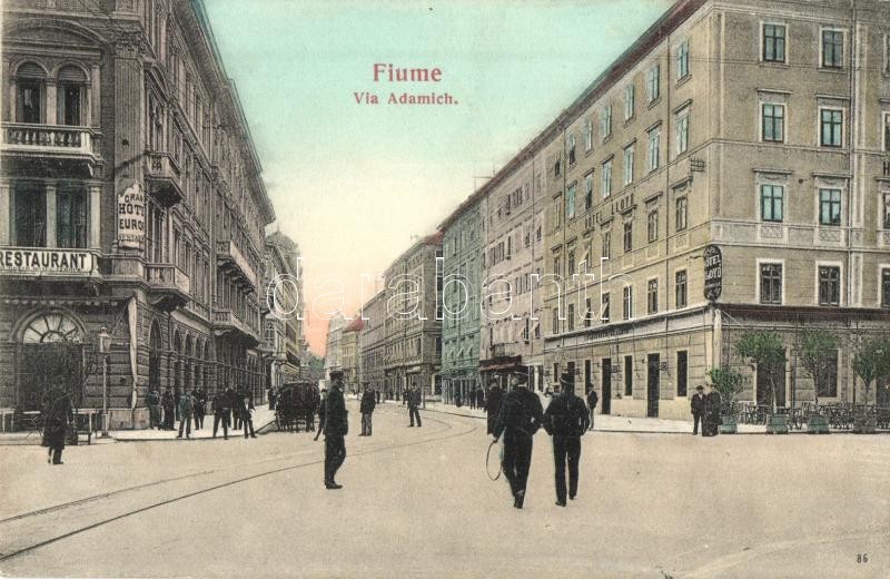 Beschreibung: Fiume, Via Adamich, Hotel Europa and Lloyd, restaurants