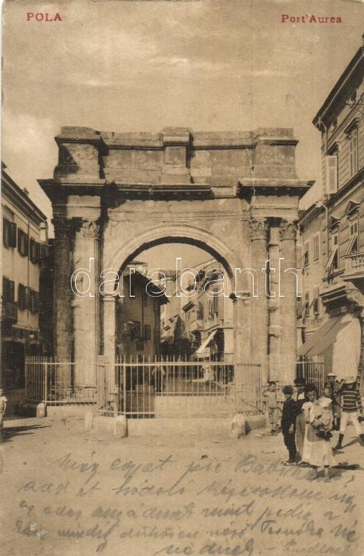 Pola, Pula; Port Aurea / gate (EK) https://www.darabanth.com/de/475-Fernauktion/475.0/Ansichtskarten/Kroatien~1500009/Pola-Pula-Port-Aurea-gate-EK~II1725422