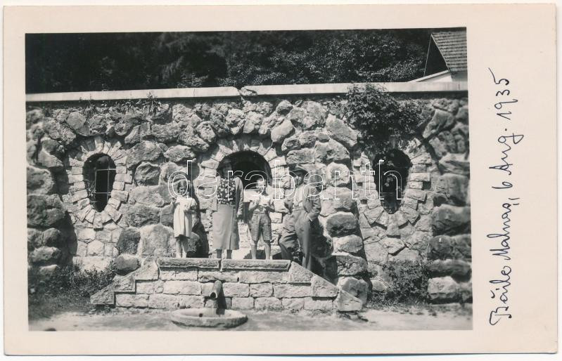 Beschreibung: 1935 Málnásfürdő, Baile Malnas; csoportkép a forrásnál / spa, group photo by the mineral water spring, well. photo