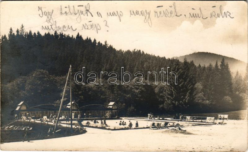 Beschreibung: 1927 Felsőzúgó-fürdő, Ruzsbachfürdő, Bad Ober Rauschenbach, Kúpele Vysné Ruzbachy; strand, fürdőzők / spa, bathers. Foto Pollyák photo