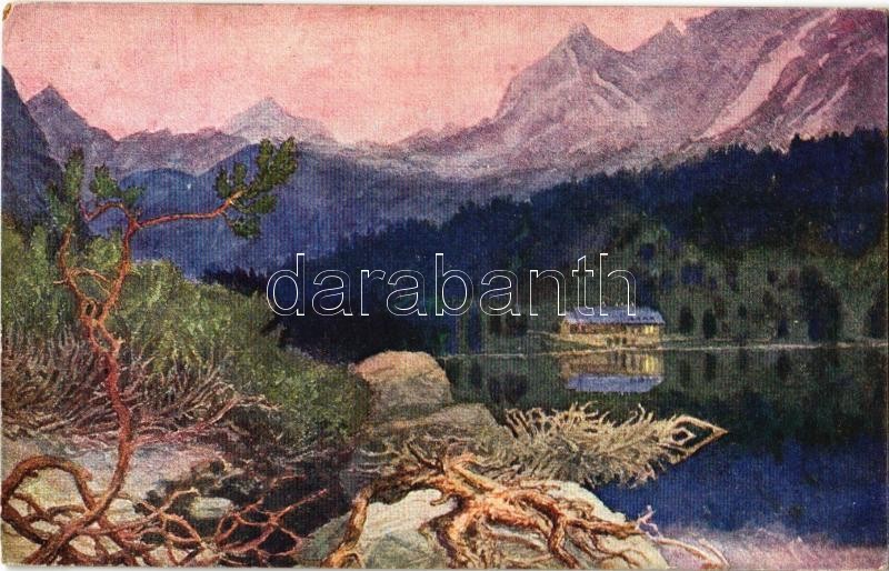 Beschreibung: Tátra, Tatry; Strbské Pleso, Popradské Pleso, Mailáthova útulna / Csorbató, Poprádi-tó, menedékház / lake, mountain hut