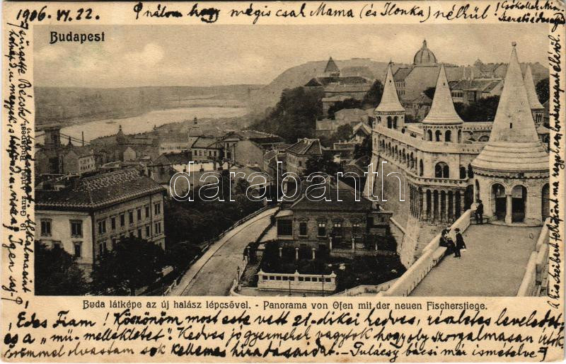 1906 Budapest I. Buda látképe az új halász lépcsővel. Ganz Antal 19. https://www.darabanth.com/de/475-Fernauktion/475.0/Ansichtskarten/Ungarn~1500005/1906-Budapest-I-Buda-latkepe-az-uj-halasz-lepcsovel-Ganz-Antal-19~II2979374