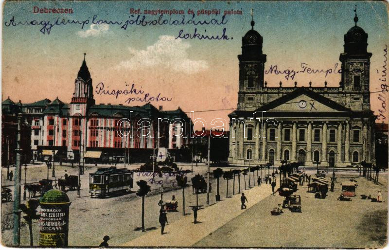 1920 Debrecen, Református nagytemplom és püspöki palota, villamos, pia... https://www.darabanth.com/de/475-Fernauktion/475.0/Ansichtskarten/Ungarn~1500005/1920-Debrecen-Reformatus-nagytemplom-es-puspoki-palota-villamos-piac-Vasuti-levelezolapar~II3163436