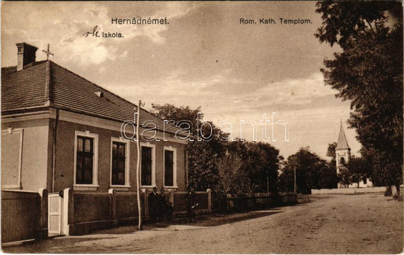 1927 Hernádnémeti, Római katolikus templom és iskola (EK) https://www.darabanth.com/de/475-Fernauktion/475.0/Ansichtskarten/Ungarn~1500005/1927-Hernadnemeti-Romai-katolikus-templom-es-iskola-EK~II3226275