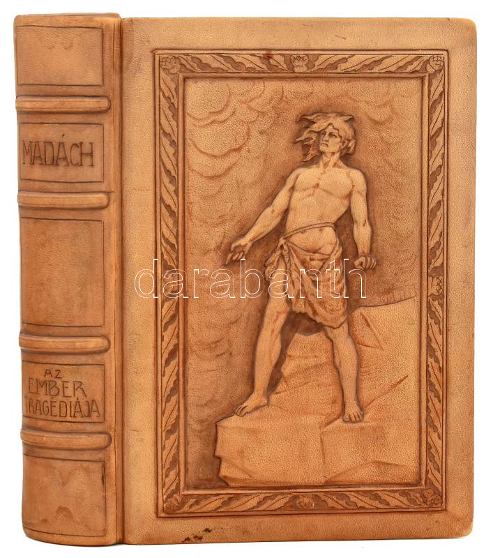 Harsányi Zsolt: Ember küzdj. Madách életregénye 1-2. kötet egybe kötve Bp., é.n. Singer. Plasztikus, férfialakot ábrázoló egyedi egészbőr kötésben, gerincén Madách: Ember tragédiája felirattal. Jelzett egyedi könyvkötői kötés, Gácsik István, Kelenvölgy. 1920-1940 körül