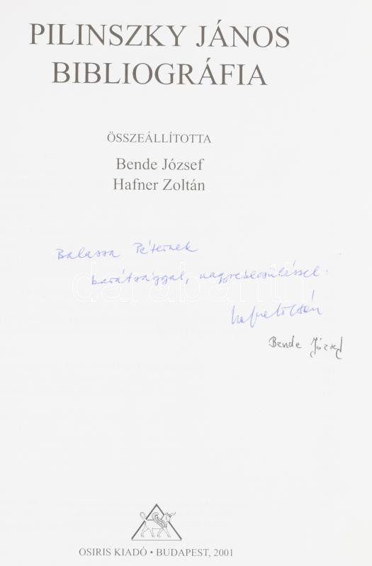 Pilinszky János bibliográfia. Összeáll.: Bende József, Hafner Zoltán. ... https://www.darabanth.com/de/475-Fernauktion/475.0/Bucher/Bucher-Andere-kuriositaten~1000037/Pilinszky-Janos-bibliografia-Osszeall-Bende-Jozsef-Hafner-Zoltan-Az-osszeallitok-alt~II3213513