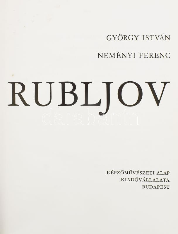 György István - Neményi Ferenc: Rubljov. Bp., 1973, Képzőművészeti Alap. Gazdag színes képanyaggal illusztrálva. Kiadói egészvászon-kötés, kiadói papír védőborítóban, néhány kissé foltos lappal.