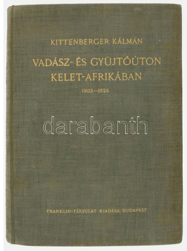 Kittenberger Kálmán: Vadász- és gyüjtőúton Kelet-Afrikában 1903 - 1926. Nagybányai Horthy Jenő előszavával. Bp.,[1934.], Franklin, 1 (címkép, Kittenberger Kálmán portréja) t. + 395 p.+ 64 (fekete-fehér képtáblák) t. Harmadik kiadás. Kiadói egészvászon-kötés, ex libris-szel, régi AKV-s aukciós címkével.