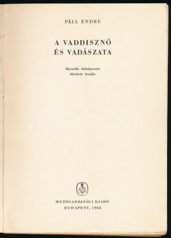 Páll Endre: A vaddisznó és vadászata. Bp.,1968, Mezőgazdasági Kiadó. M... https://www.darabanth.com/de/475-Fernauktion/475.0/Bucher/Bucher-Jagd~1000023/Pall-Endre-A-vaddiszno-es-vadaszata-Bp-1968-Mezogazdasagi-Kiado-Masodik-atdolgozott-~II3223124