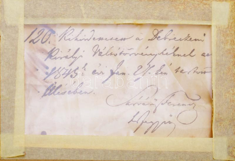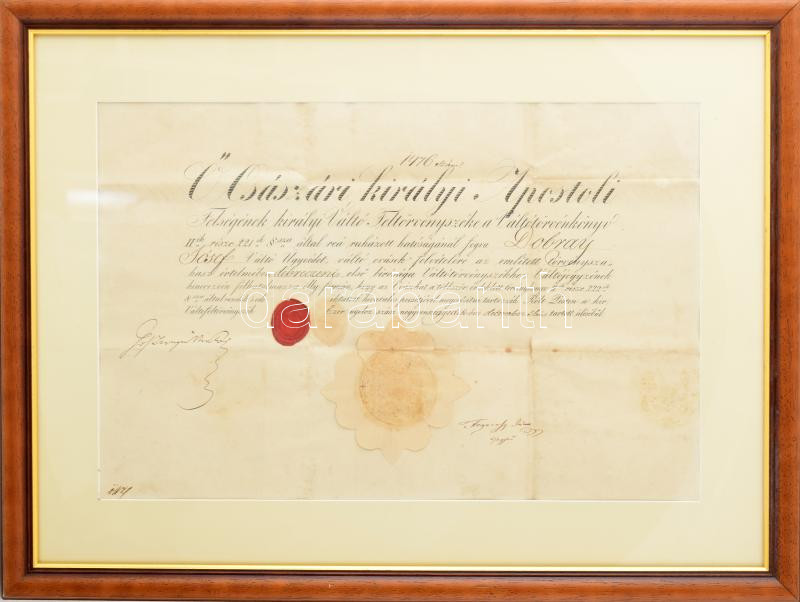 1840 Váltójegyzői kinevezés a debreceni váltótörvényszékre Fogarassy János és Sárváry Ferenc aláírásával dekoratív üvegezett keretben Külső méret 60x44 cm