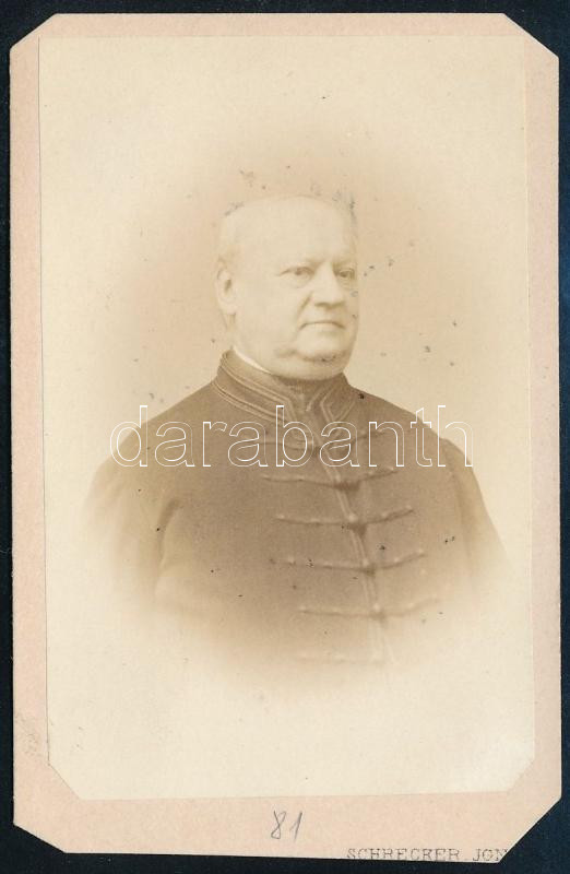 1865 Horváth Cirill József (1816-1871) író, filozófus, piarista áldozópap, egyetemi tanár, az MTA tagja; vizitkártya Schrecker Ignác (1834-1888) pesti műterméből, sarkai vágottak, 9,5x6 cm