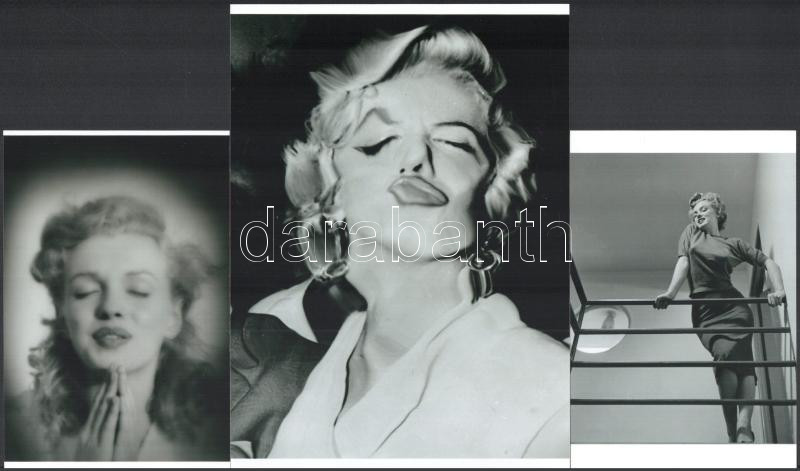 Marilyn Monroe (korábban Norma Jeane) (1926-1962) amerikai színésznő, fotómodell, énekes, 3 db eltérő időben készült felvétel modern nagyítása, Pánczél György (1920-?) filmtörténész hagyatékából (film- és színházifotó gyűjteményéből), jelzés nélkül, 21x15 cm és 15x10 cm