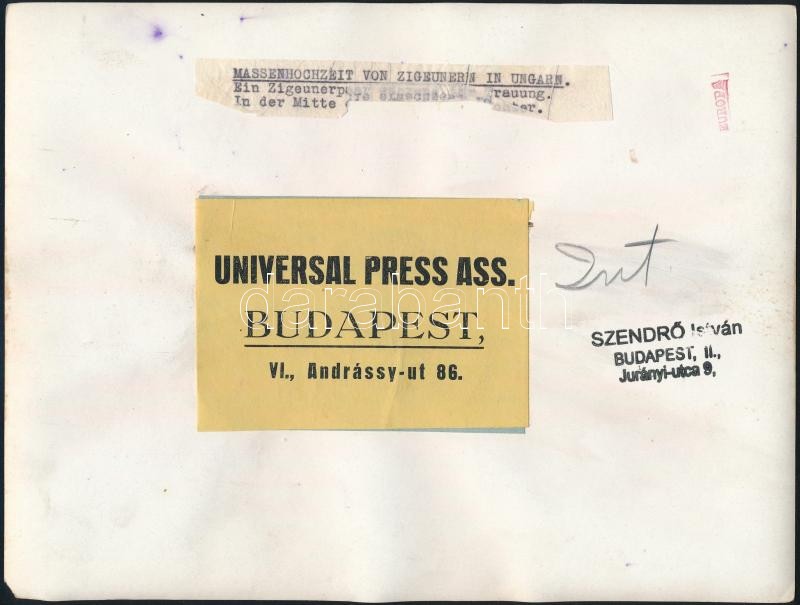 cca 1930-1940 Szendrő István (1908-2000): Cigányok a plébánossal, háto... https://www.darabanth.com/de/475-Fernauktion/475.0/Fotografie/Foto~2000026/cca-1930-1940-Szendro-Istvan-1908-2000-Ciganyok-a-plebanossal-hatoldalon-pecsettel-jelzet~II3224688