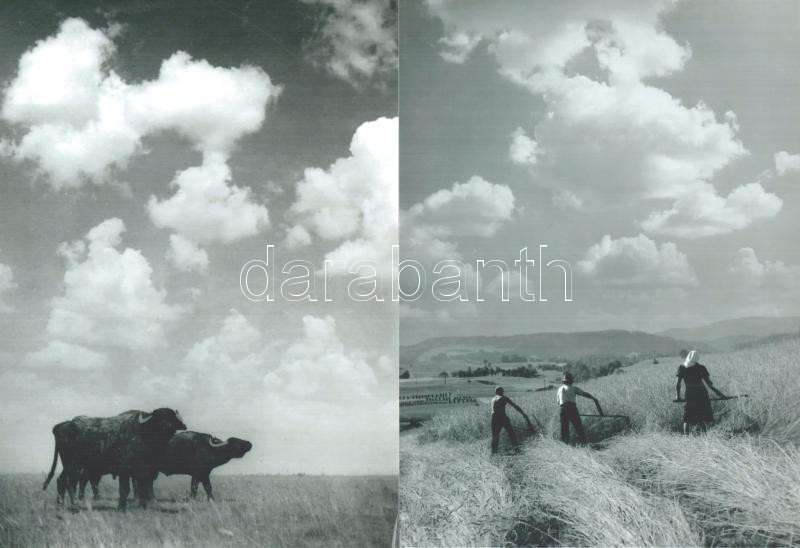 cca 1937 Aszmann Ferenc (1907-1988) debreceni fotóművész felvételei (Bivalyok, Aratás), 2 db modern nagyítás, jelzés nélkül, a néhai Fővárosi Fotó Vállalat (FŐFOTÓ) Váci utcai Fotóművészeti Galériájának archívumából, 21x15 cm