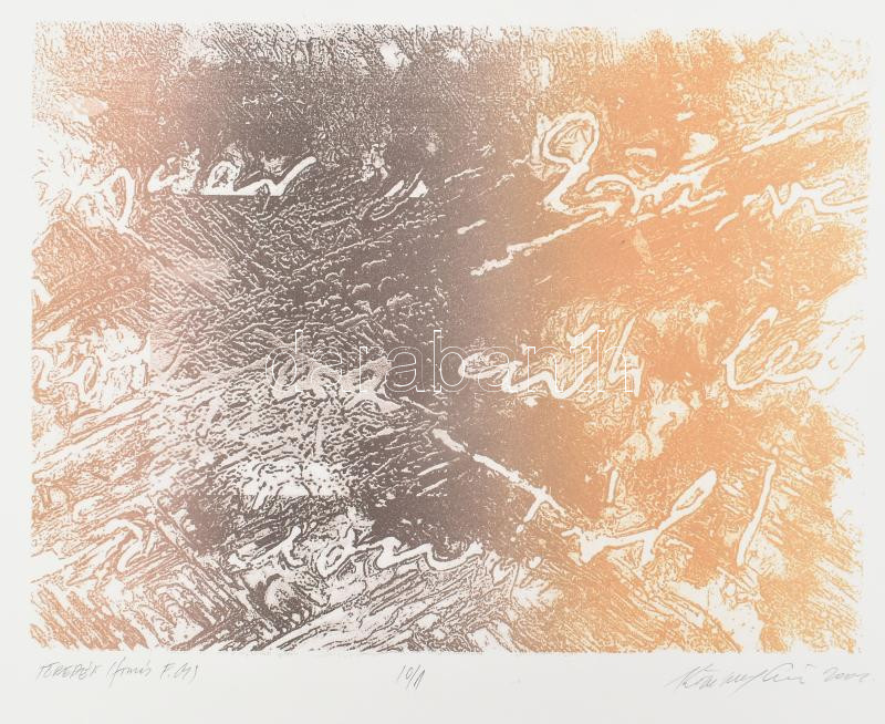 Beschreibung: Kőmíves István (1949-2007): Töredék. Litográfia, papír, jelzett, 10/1 számozással. 20,5x27,5 cm
