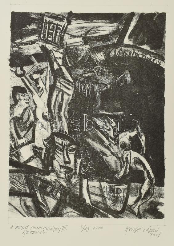 Kondé László (1954-2002): A festő menekülései III., rettenet, 2001. Li... https://www.darabanth.com/de/475-Fernauktion/475.0/Gemalde-und-Grafiken/Gemalde-und-Grafiken~500002/Konde-Laszlo-1954-2002-A-festo-menekulesei-III-rettenet-2001-Litografia-papir-jelze~II3144890