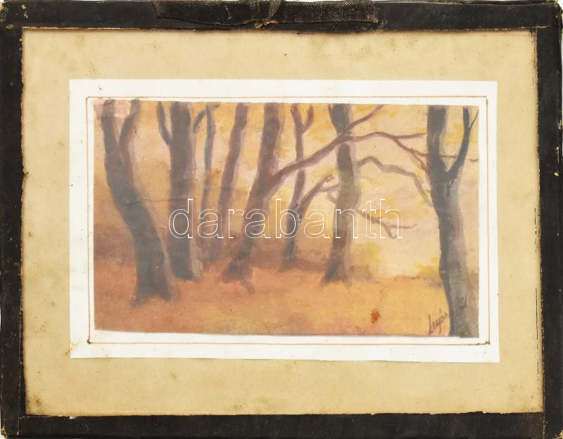 Beschreibung: Nyáregyházi báró Nyáry Pál (?-?): Erdő ősszel. Akvarell, papír. Jelezve jobbra lent. Üveg mögött. 8x13,5 cm