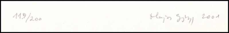 Beschreibung: Olajos György (1953-): Resurrection. Lito-ofszet, papír, jelzett, számozott (119/200), 23x29 cm. A 2001-ben megjelent In passing/Menet közben c. mappából.