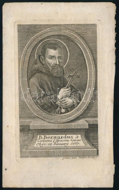 cca 1750 Szent Bernátot ábrázoló rézmetszetű szentkép 9x14 cm https://www.darabanth.com/de/475-Fernauktion/475.0/Gemalde-und-Grafiken/Stich~500005/cca-1750-Szent-Bernatot-abrazolo-rezmetszetu-szentkep-9x14-cm~II3202617