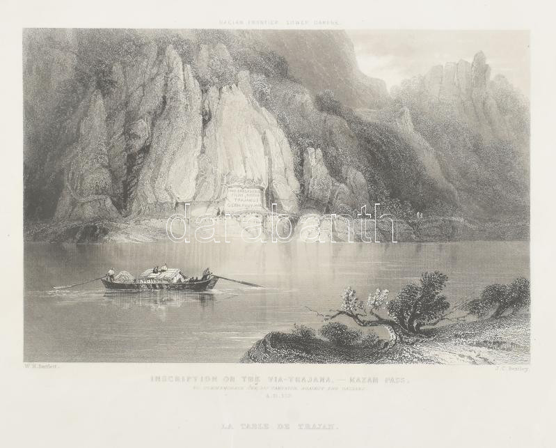 cca 1844 Bartlett, William Henry (1809-1854): Inscription on the Via-Trajana - Kazán-szoros, acélmetszet, papír, bal felső sarkában hajtásnyommal, 13×18 cm