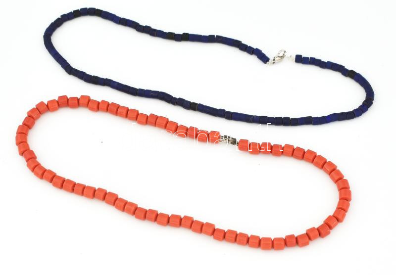 Beschreibung: 2 darab design nyaklánc, kékköves és korallszínű