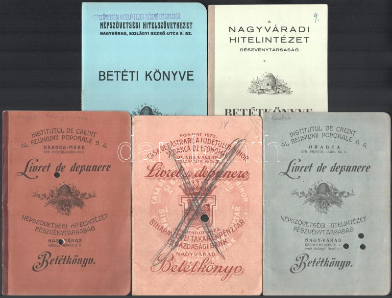 Beschreibung: 1923-1944 5 db nagyváradi betétkönyv