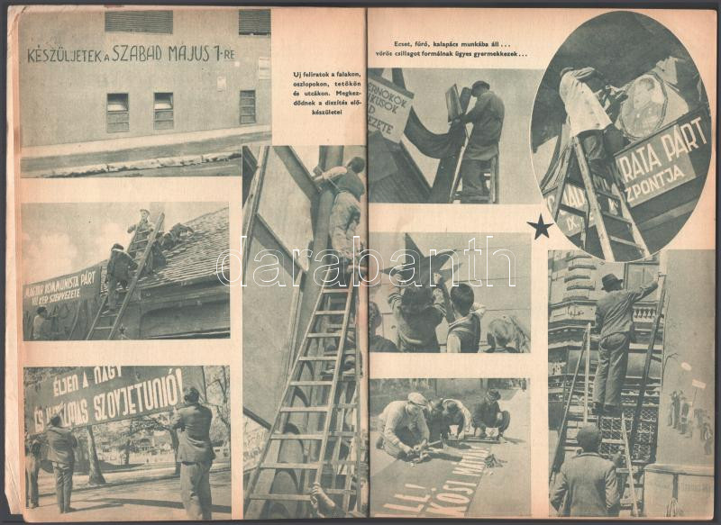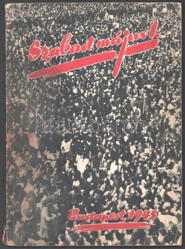 1945 Szabad május elseje. 1945. május 1. Magyar Kommunista Párt - Szociáldemokrata Párt - Szabad Szakszervezetek. Propagandakiadvány rengeteg érdekes fotóval. Képszerkesztő: Byssz Róbert. Bp., Forrás-ny., VIII+136 p. Papírkötésben, a gerinc kissé sérült.